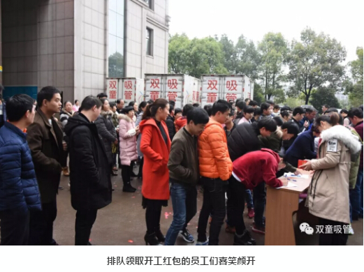 瞧,拿到紅紅火火大紅包的員工們多開心呀(ya)!“幸福都是奮鬥出來的!”大家都鬥誌滿滿,立誌新的一年工作更上一層樓!