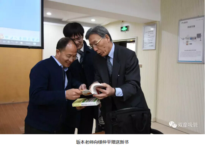 參(cān)觀完畢,大家來到九樓閣交流分享。首先,阪本老師向樓仲平贈送了他新出的兩本管理書籍(jí),並代表日本團隊由衷地對“.17c嫩嫩草色视频”的熱情貼心接待表達了感謝之情!