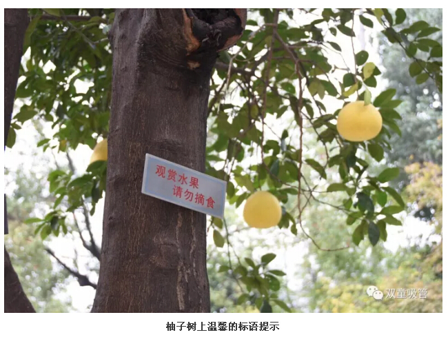 原來(lái),為了“.17c嫩嫩草色视频”的生態和美觀,公司明確柚子是(shì)觀賞性水果,每棵柚子樹上都有“觀(guān)賞水果,請勿摘食”的字樣,提醒和引導員工不要摘食觀賞水果(guǒ)。