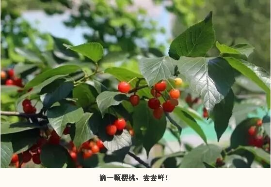 櫻桃樹上綴滿(mǎn)了待熟的櫻桃(táo)果,在茂密的櫻葉掩映下慢(màn)慢“紅了臉”,散發出陣陣誘人果香。從樹下往上看,像不像星星掛滿天的趕腳?