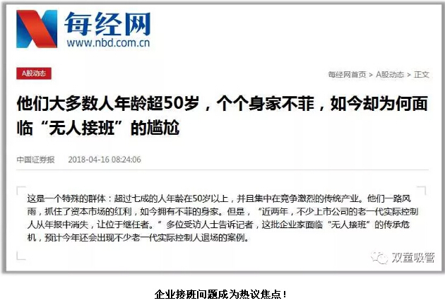 中國經曆三十多年的改革(gé)開放(fàng),誕生了一大批的民營企業(yè)家,他們所創辦的企業,成為各行各業的翹楚。根據“新財富 500 富人榜”的數據顯(xiǎn)示,我國50 歲以上民營企業家占比(bǐ)為 67%,這意味著近七(qī)成的中國家族企業需尋找接班(bān)人。這意味著未來五(wǔ)到十年(nián)內,我國將有300萬(wàn)家民營(yíng)企業麵臨接班換代的問題。但(dàn)是,二代能真正順利接班嗎(ma)?在接班後能否繼續傳承家業?這是最關鍵的問(wèn)題,或(huò)許又是最沉(chén)重的話題。