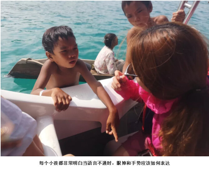當我們的快艇一放慢速度,我們就(jiù)發(fā)現許(xǔ)多小船(chuán)便快速朝著我們前進,說實話心裏還是很恐慌的。當船慢慢靠近了以後發現,船上基本上是老人、婦人,最多的是小(xiǎo)孩,他們曬得黝黑黝黑的,女孩子臉上還塗著黃(huáng)白色的泥巴,睜著大(dà)大的眼(yǎn)睛,不斷地(dì)用目(mù)光搜尋你身(shēn)上有沒有他(tā)們想要的食物。一旦發現,就賴著你,用央求的眼神可憐巴巴地指著食物(wù),希望你可以把食物分享給他們。我們(men)翻遍了包包,隻找(zhǎo)到一罐口香糖。姐姐拿出一顆想給一個小女孩,那個小女孩竟然搖搖頭,指(zhǐ)著那個罐子表示她想要一罐。考慮到不確定(dìng)他們能夠明(míng)白口香糖是要(yào)吐掉(diào)的(de),我們就拒絕了她的要求。小女孩也不生氣,央(yāng)求了一段時間後,便(biàn)轉移目標,指了指姐姐頭上(shàng)戴著(zhe)的花,想讓我們把花也(yě)給她。這怎麽行,我們也隻有一(yī)朵,還是買泳衣的(de)時候送的,後續(xù)大家可以看到這朵花不斷地出現在我和姐姐的頭上,發揮了卓越的裝飾作用……捂臉。
