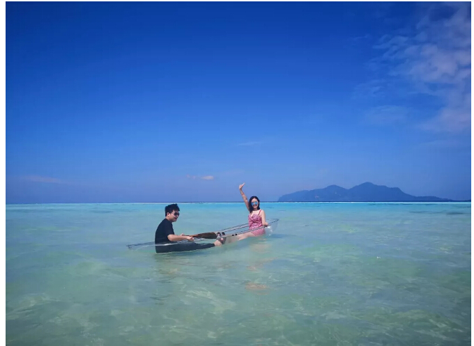 終於(yú)說到第四個島,也是我們一致認為四(sì)個島裏最美的海島——軍艦島。這(zhè)個島很小,以像一艘軍艦而得名,沙子又白又軟又細,海水也非常清澈。小黑哥給我們準備了玻璃船和大型水上玩具,我們盡情玩鬧,拍下(xià)了旅程中最美的(de)海島照片。