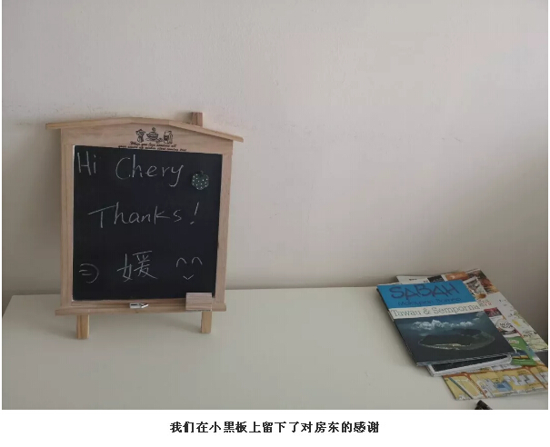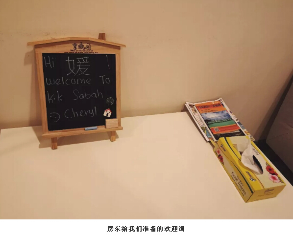 搭乘晚上的飛機回到亞庇,我們提前一天在愛彼迎上訂好了(le)套房。下麵必須安利一波我(wǒ)們在亞庇住的(de)套房!這個Lazy.Elephant套房,它位(wèi)於哥打京那巴魯市,是中央商務區(qū)天空套房。它不僅(jǐn)有兩扇(shàn)大大落地窗可以觀賞城市景觀和絕美日落,還能共享sky hotel的INFINITY遊泳池,健身房和天空休息室!有這樣的套(tào)房,可以提供六(liù)人居住,一晚隻要500左右人民幣,太適合家庭或者組團居(jū)住了!房東Chery人超好,因為我們到亞庇已經(jīng)十一點多(duō)了,她(tā)怕(pà)我們找不到地方,把每一個需要拐彎和注意(yì)的地方都(dōu)用照片拍下來標注好箭頭,提醒我們應該(gāi)怎麽走。到達房間後,能夠看到她在客廳小黑板上寫了歡迎詞,貼心(xīn)的寫了姐姐的中文字“媛(yuán)”,讓人一進門就感覺特別溫暖。