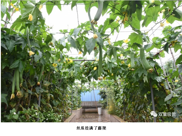 賞完了美麗的向日葵花,再跟著吸管妞來看看(kàn)豐收的菜園子。瞧!一根根絲瓜掛在茂密的藤架上,間或有幾朵小黃花點綴,煞是好看!一旁的南瓜也迫不及待的生長一個個(gè)“小腦袋(dài)”掛在枝葉上,別提多誘人(rén)啦(lā)!
