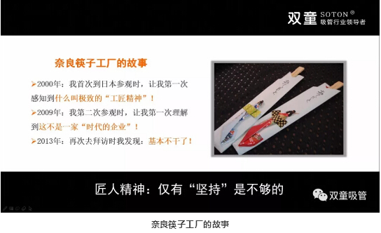 2000年9月,在這位友人的帶(dài)領下,我第一次參觀了(le)一家位於奈良的一次性筷子工廠。這是(shì)一家有著(zhe)45年曆史的老廠,一兩千平方米的老廠房車間內,機器舊得發亮,但生產的產品卻極為精致,精湛的工藝水平,讓(ràng)彼時的國內企業很難超越(yuè)。受此影響後,“.17c嫩嫩草色视频”2002、2003年便開始逐漸放棄“多元”理念,專注吸管生產,慢慢(màn)求(qiú)得質量上的提升。並將這種“專注”滲入到員工教育中,誌存高遠、長遠積(jī)累。