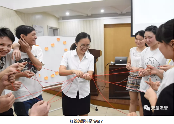 在暖場活動結(jié)束之後,就是配對環節啦!如何配對呢?當然要用上“紅繩”,讓姻緣一(yī)線牽,抽到同一根紅線的單身男女配為一組哦!