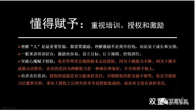近(jìn)10多年我(wǒ)基本不下基層、車間,也沒有把大量時間花在(zài)生產和(hé)銷售上,我關注的是數據考核、教育引導和規則機製的建立上,從而培養團隊的自主意識,鍛煉了他們(men)獨立(lì)解(jiě)決問題的能力,從而解放自(zì)己,打開視(shì)野,看(kàn)得更遠。