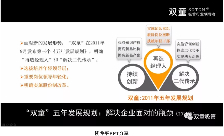 樓仲平早在5年前就想到了這個問題,並發表了第二個“五年發(fā)展規劃”,其中提到了(le)3個(gè)關鍵(jiàn)詞“持續創新,再造經理人,解(jiě)決二代傳承。”