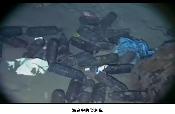 在深度計數器顯示海底1600米的地方,發現海底居然也(yě)是有著(zhe)許多塑料瓶。