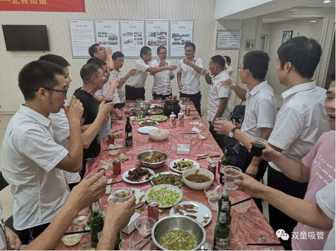 公司本來決定讓大家去外麵好(hǎo)好撮(cuō)一頓(dùn)!