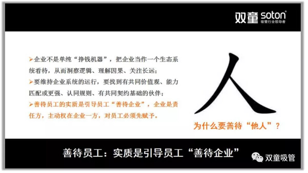 好的團(tuán)隊也是靠“養”出來的,培養一支高(gāo)效(xiào)團隊的基礎條件是薪資和福利要適當高於行業薪資和區域薪資的平均水(shuǐ)平,盡可能為核心團隊解決生活問題,可(kě)以有溫情但不要有人情,讓員工切實(shí)感受到組織關愛。在“蛻變”中重構“關係規則”,這(zhè)是企業(yè)組織能力建設的重點。我們也建(jiàn)立(lì)了團(tuán)隊與個體之間健康的人事關係,做到用目標、責任、權利來聯結,用詳盡的規(guī)範製度來確保團隊的(de)健康,弱化(huà)資曆、人情,消除個人(rén)情感對工作的影響(xiǎng)。