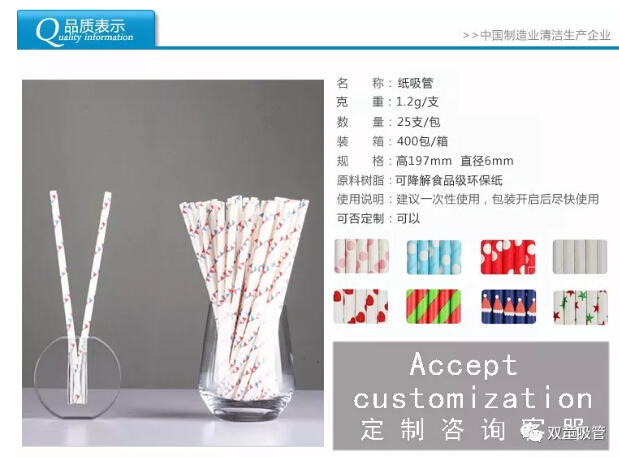 相對於塑料吸管,紙質吸管以(yǐ)食品接觸類原紙為主要材料(liào),並能用大豆基油墨印刷各類花(huā)色(sè),在顏色鮮豔飽滿的同時,確(què)保安全無毒無異味,在回收(shōu)廢棄後三到四個月內可(kě)完全降解(jiě),符合歐美國家(jiā)對食品安全包裝(zhuāng)的衛生(shēng)要求,可用於生日(rì)派對、餐飲連鎖、家(jiā)庭消費、兒童DIY用具等各類場所!