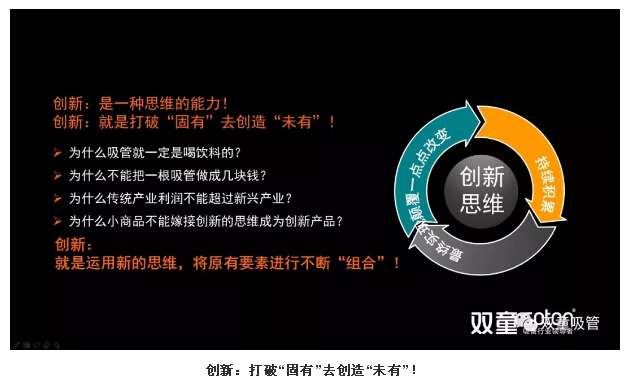 現在(zài),不少人動不動就喊要創新,但是到底什麽是創新?我一直理解創新工作的(de)本質在於“思維創新”,就是運用新的思(sī)維,將原有要素進行不斷“組合”,打破“固有”創造“未有”。隻有用創新思維去做產品、做事業(yè),才能改變自己乃至於整個企業的命運(yùn)!