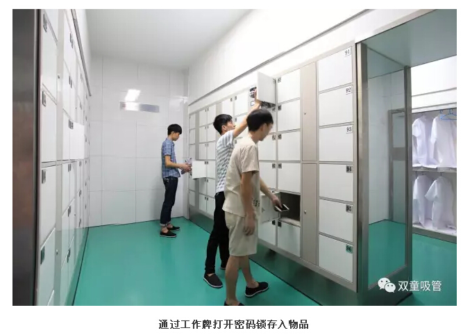 2、員工來到第一更(gèng)衣區,將自己的(de)私人衣物儲存在櫃子中。