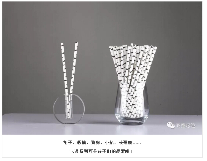 吸管妞今日推薦:卡通係列紙質吸管。胡子、彩旗、狗狗、小船、長頸鹿……卡(kǎ)通係列可是孩子們(men)的最愛哦,快來get吧!