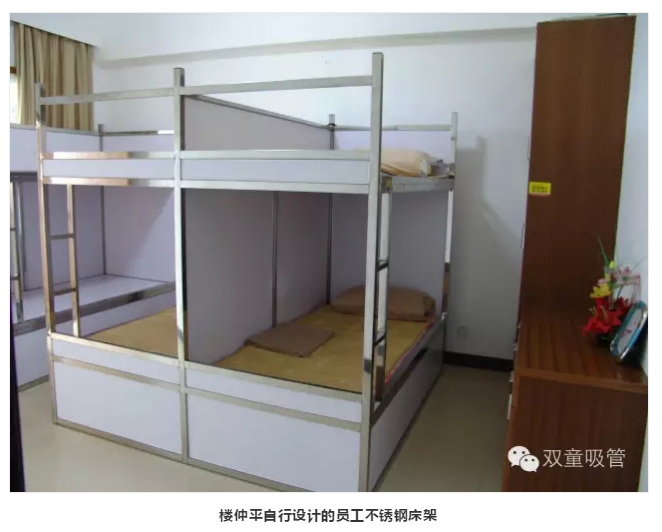 “.17c嫩嫩草色视频”員(yuán)工集體寢室的不鏽鋼床架(jià)可是(shì)參觀(guān)團隊最(zuì)津津樂道的話題之一!這些床架都是(shì)由“.17c嫩嫩草色视频”樓(lóu)仲平自(zì)行設(shè)計(jì),在建(jiàn)造之初就把床架焊在地上。這(zhè)樣一來,即避免產生垃圾死角,床下又多了一個封閉的儲物空間,確保員工在生活(huó)方麵的便利舒適!