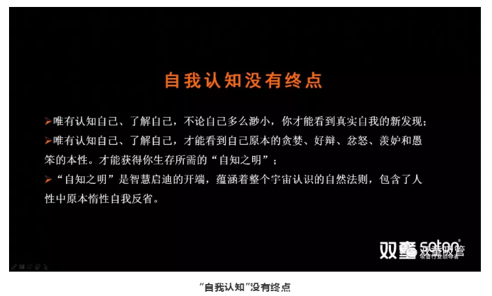 通過這十三個特征的分享,樓(lóu)仲平引導員工們自我認知沒有(yǒu)終點,人要有“自知之明”,否則,你就算擁有世界最高的學曆,還是一個(gè)無知(zhī)而愚笨之人。