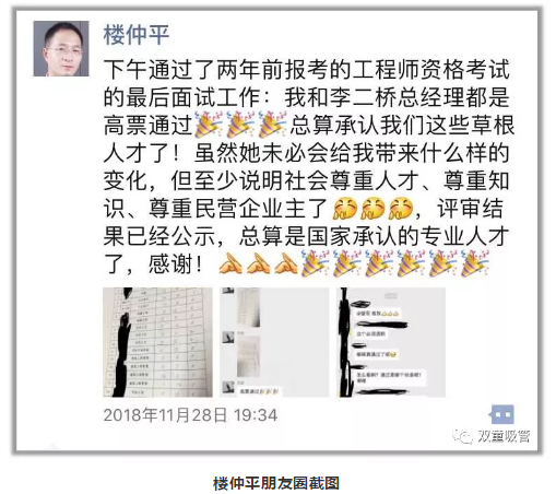在政策的引領下,在樓仲平不斷突破,不斷精進下,樓仲平順利通過(guò)了工程(chéng)師評審(shěn)。他(tā)也欣喜表示:“雖然這未(wèi)必(bì)會給我帶來什麽樣的變(biàn)化,但(dàn)至(zhì)少說明社會尊重人才、尊重知識、尊重民營企業主(zhǔ)了,總算是國家承認的專業人才了!”