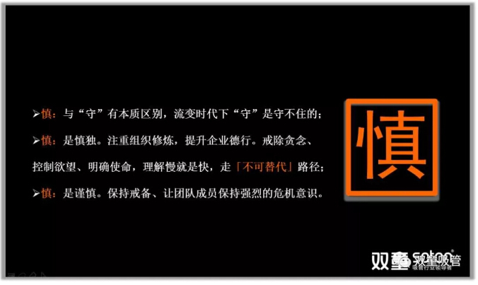 流變時代下,“守”是守不住(zhù)的。“慎”,對企業來說是要認識到這個時(shí)代給我們帶來的巨變衝擊(jī),並知道(dào)自己的不足和短板。所以,“慎”是保持謹(jǐn)慎、戒備和危機。