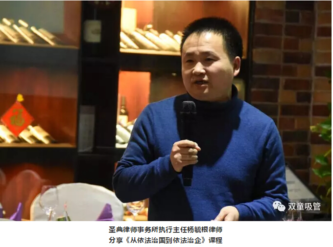 年會中的下一項議程,是由聖典律師事(shì)務所執行主任楊毓根律師分享《從依法治國到(dào)依法治企》,楊毓根律師首先也和大家分享了(le)從法律角度(dù)對“慎”字的理解,並結合事例向大家分享了為何要推動依法治國和依法治企(qǐ),以及依法治(zhì)企(qǐ)的重要性(xìng)!