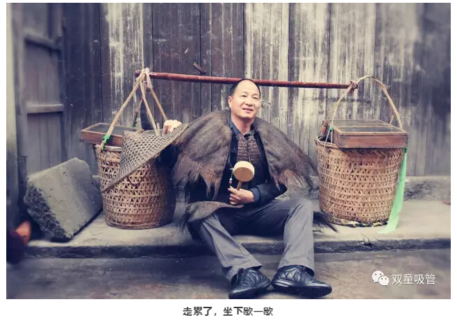 這是“雞毛換糖”人挑(tiāo)貨郎(láng)擔的(de)場景……