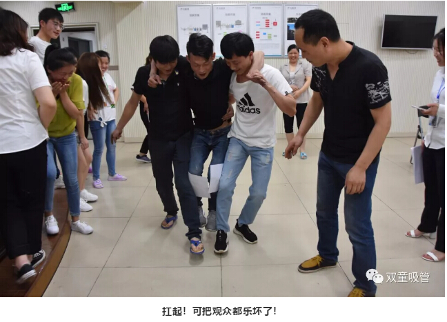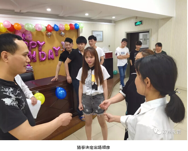 吃飽喝足之後,就是激(jī)動人(rén)心的遊戲環節啦!最精彩的就是夾紙跑遊戲,要求三個人用腿部夾送兩(liǎng)張紙完成(chéng)遊戲。腦洞大開的壽星們(men)想出了把中間的人扛起(qǐ)來(lái)的辦(bàn)法。給壽星們機智鼓掌!