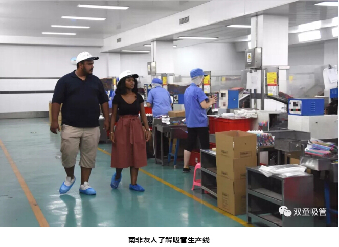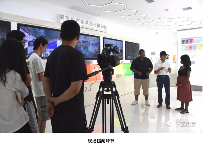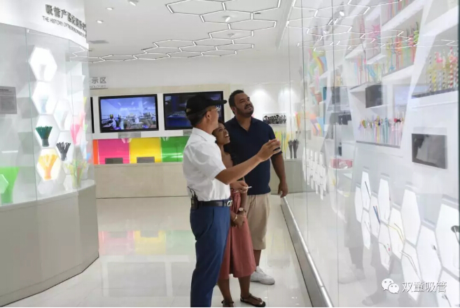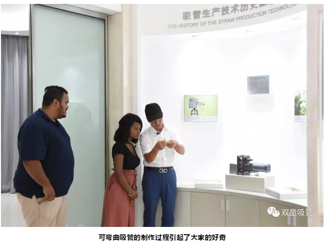 在參觀(guān)過程中,樓仲(zhòng)平也向南非友人介紹了早期可彎(wān)吸管的製作(zuò)過程:吸管(guǎn)通過成型機(jī)器壓出折彎波紋後,工人們再用一根筷子將吸管擠壓出彎節,形(xíng)成可彎吸管。南非友人(rén)在(zài)看完演示後恍然大悟,表示他們從沒想過原來早期(qī)吸管是這樣(yàng)巧妙地做成的!