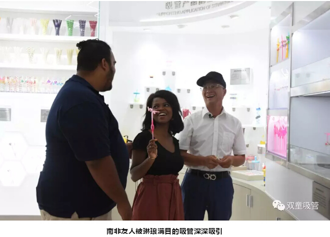 “Wow,it’s amazing!”一走(zǒu)進博物館(guǎn)內部,兩位南(nán)非友人就被博物(wù)館裏700多種琳琅滿目(mù)的吸管(guǎn)深深吸引住了!