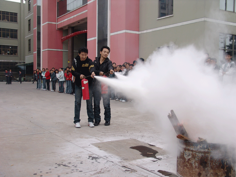 上(shàng)圖為員工使用幹粉滅火器進行滅火比賽現(xiàn)場