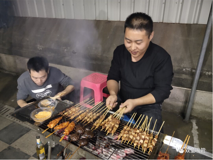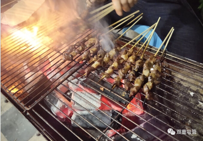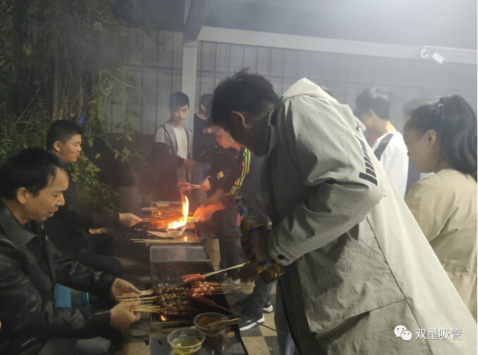 大家圍坐在烤爐前爭當“燒烤小販”,為壽星們進行服務。大夥手(shǒu)上的肉串還沒吃完,“燒烤小販”們已經笑眯(mī)眯地把新(xīn)烤好的肉(ròu)串奉上(shàng)了,吃都來不及,這是什麽(me)節奏!
