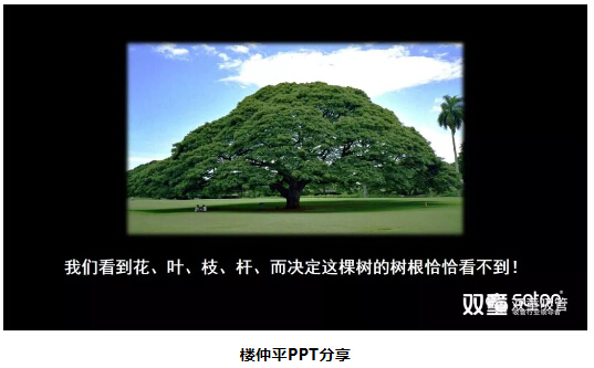 緊接著,樓仲平通過一棵樹的圖(tú)片,再次引導大家(jiā)思考:我們通過圖片能看到樹的樹幹、樹枝、樹葉等,但(dàn)是真正決定這棵樹的樹根(gēn),卻並不能直接看到。所以(yǐ),看不到的東西並不代表它不存在,反而往往是事物的根基和底(dǐ)層邏(luó)輯!