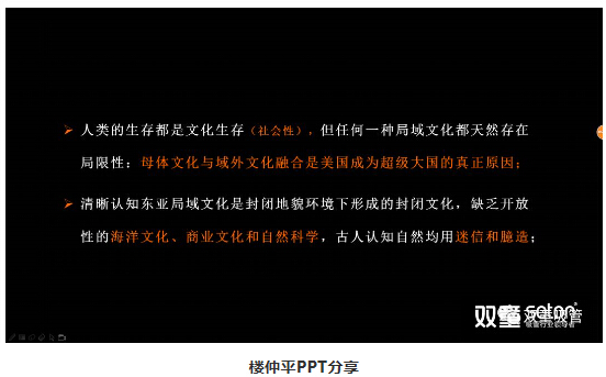 在引入主(zhǔ)題前,樓仲平給在座聽眾們打了一個“預防針”,坦言這個(gè)版塊將會給大家帶來極大的思想衝擊和認知上的震撼(hàn),甚至會給大家帶來不適感,並引發抵觸。因為這個版塊將會引導大(dà)家認知“自我批判(pàn)”!