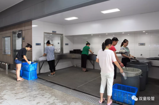 每次用完餐後,員工們將食(shí)物殘渣和湯汁倒到泔水(shuǐ)桶,餐巾紙丟進專用垃圾(jī)桶,飲料罐放(fàng)入旁邊的塑料筐,碗統(tǒng)一放到藍色筐,筷(kuài)子放進一個(gè)白色的小塑料筐(kuāng)。最後,把托盤用自來水衝洗一遍,按要(yào)求放到水池邊的指定處(chù)。在(zài)這裏,自覺進行垃(lā)圾分類已(yǐ)成為每一(yī)名員工的日常習慣。