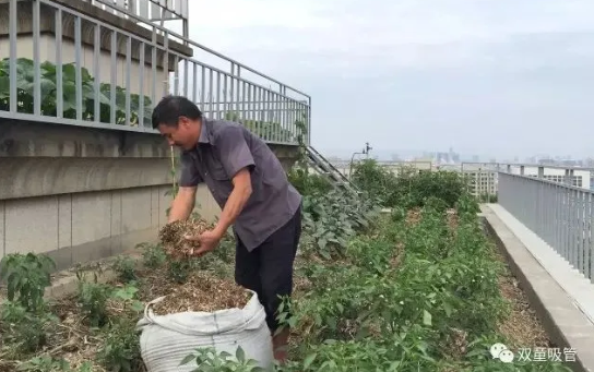 屋頂花園經過分揀的“胡柚”在生物質垃(lā)圾處理池進行發酵