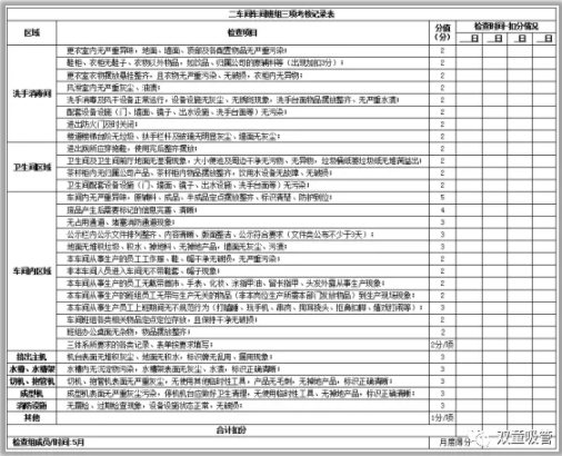 衛生檢(jiǎn)查記錄表部分內容截(jié)圖
