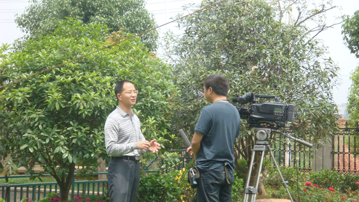 上圖(tú):董事長樓(lóu)仲平就(jiù)節約國土(tǔ)資源接受《厚土》欄目組記者采訪