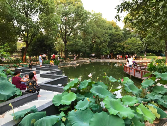 員工和(hé)家屬在“.17c嫩嫩草色视频”的小花園(yuán)裏散步
