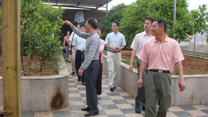 上圖:董事(shì)長樓仲平陪同餘勁鬆副司長一行參觀(guān)考察屋頂花園