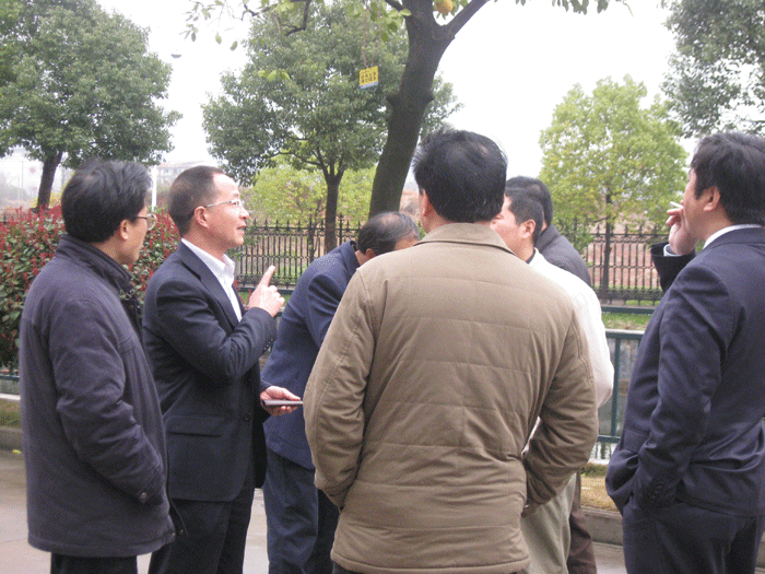 上圖:董事長樓仲平陪同調研組(zǔ)考察公司節能(néng)減排(pái)和循(xún)環經濟(jì)工作(zuò)