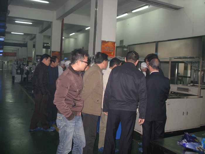 上圖:董(dǒng)事長樓仲平陪同調研組(zǔ)參觀公司生產車間