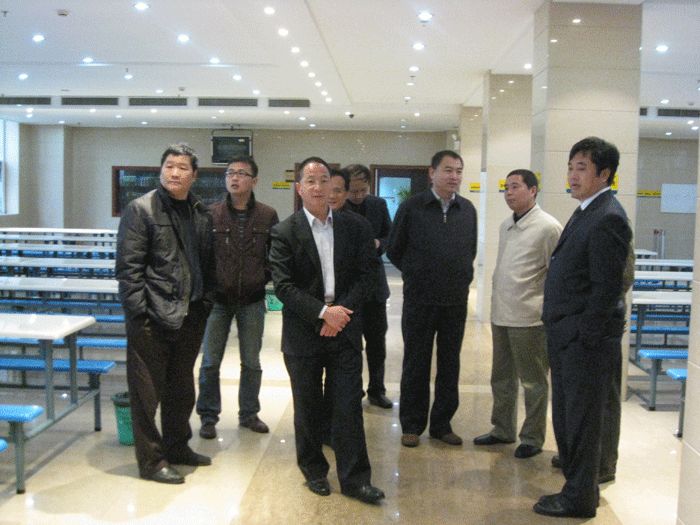 上圖:董事長樓仲平陪同(tóng)調研組參(cān)觀公司職工餐廳