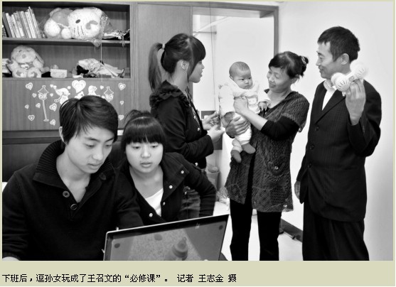 房間裏,一家人都在。兒子和女兒在看電腦,妻子和兒媳在逗芯芯玩(wán)。王召文上前“搶”過孫女,親(qīn)親(qīn)她的臉頰,喚著她的小名,逗(dòu)得小家夥咧開嘴直笑。