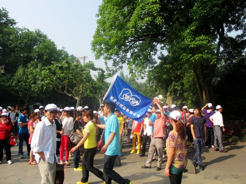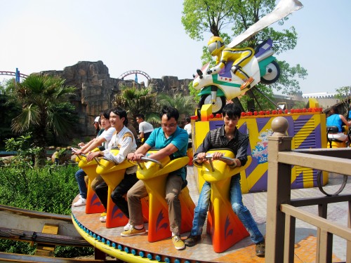 中午十一點鍾,我們出(chū)了西湖,再次(cì)回(huí)到大巴車上,直奔下一個目的地——杭州樂(lè)園。這裏對於我們 整個趨於年輕化的旅遊團隊來說,無疑是最具神秘感、新(xīn)鮮感、刺激感的娛樂天地。到達杭州樂園的時間 是11:30分,先來張集體大合影。此時,正值午飯時間,公司已經為全體員工準備好了午餐的餐票。後勤(qín) 處保證將餐票發(fā)送到每一位員工手中,玩(wán)的心情再(zài)急切,也要保障大(dà)家不餓著肚子。