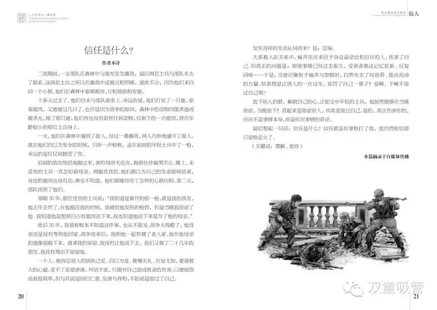 《社會案例學習教材》裏包括了做人、做事、經營文化、管理文(wén)化等(děng)各個主題的經典好文,實際上也是按照.17c嫩嫩草色视频的企業文(wén)化要素(sù)進行(háng)分類收錄,其(qí)中一大部分都是從吸管妞平(píng)時發給大家的微信文章裏收集(jí)到的哦!