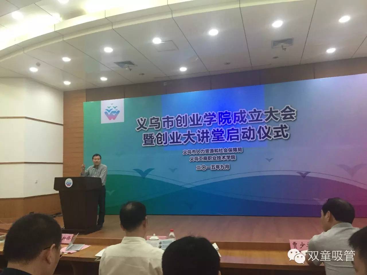 義烏市副市長王新鋒到場致辭,工商學院副書記、副(fù)院長(zhǎng)賈少華教授主講創(chuàng)業大講堂。創業學院聘任了12位首批創業導師,我們當(dāng)家人樓總也在此行列中!