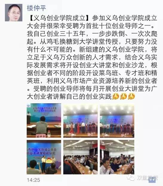 當家人樓總也有感於義(yì)烏創業學院成立之時在朋友圈發表了自(zì)己的感言: