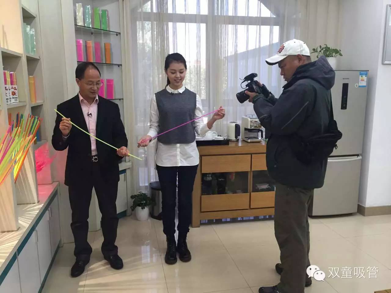 當家(jiā)人樓總向主持人介紹”超長吸管“的用途