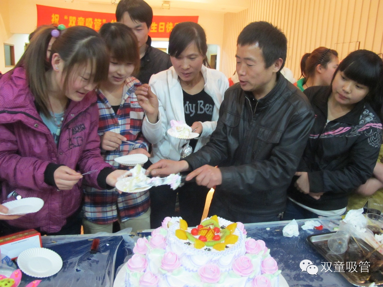 王(wáng)召文在生日會上為員工切蛋糕