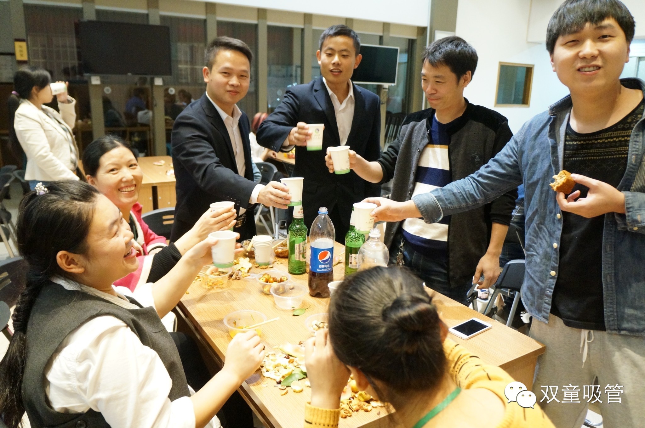 為員工們慶生的趙坡(pō)(左二)